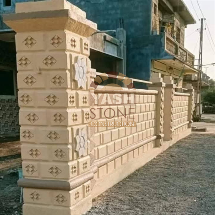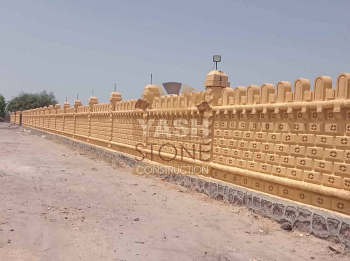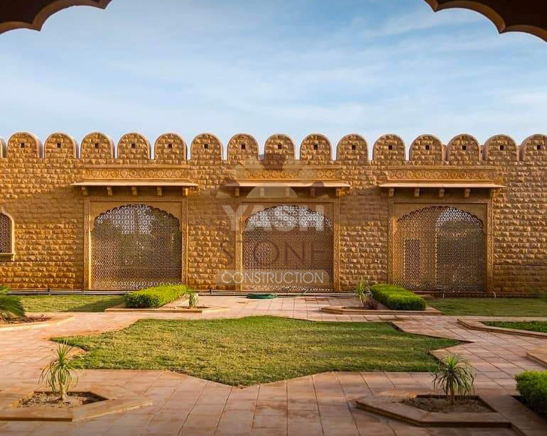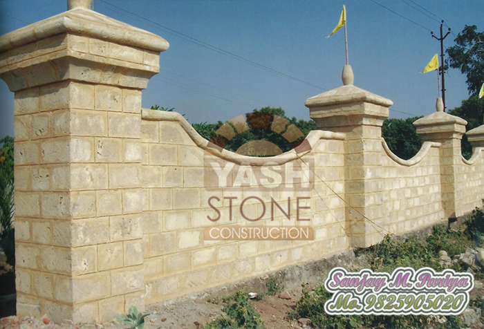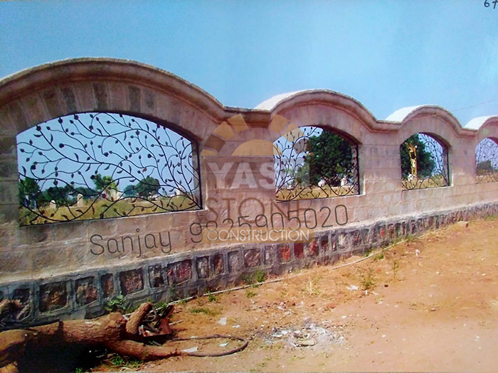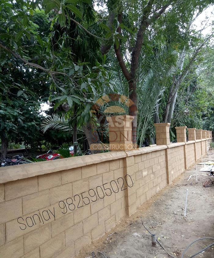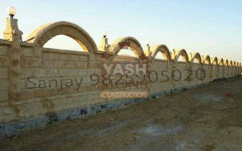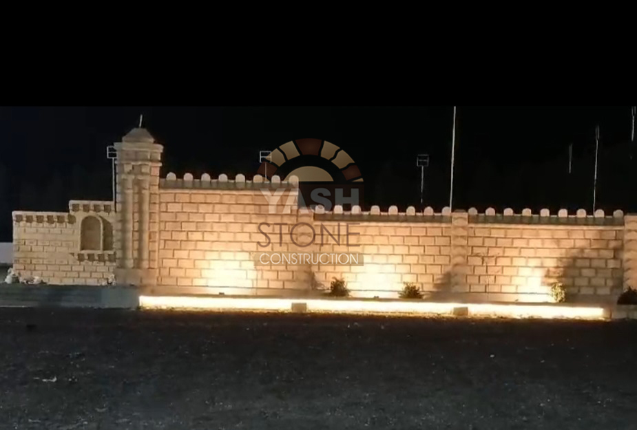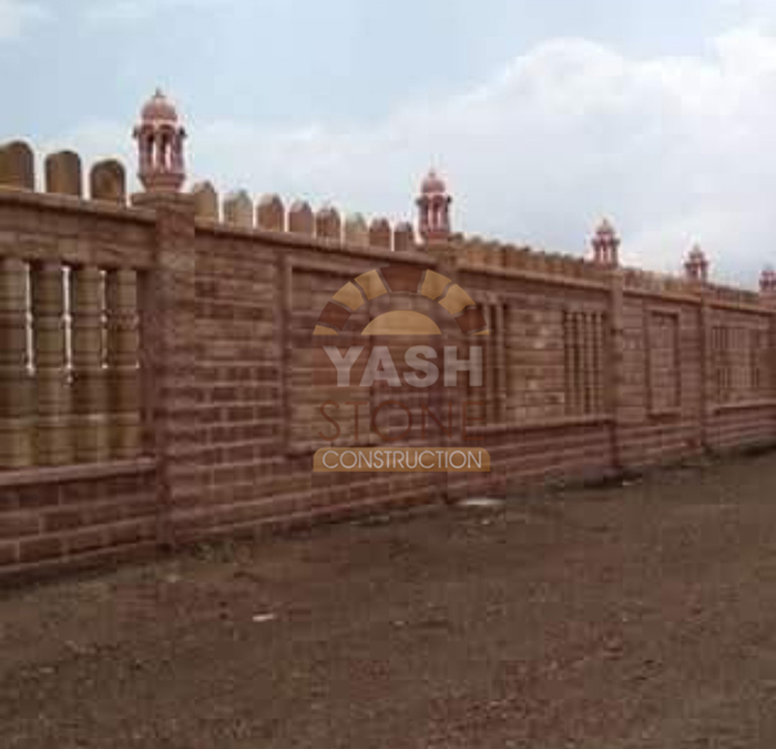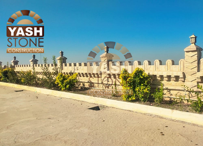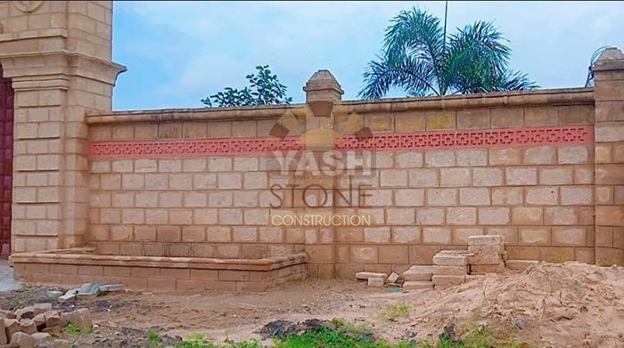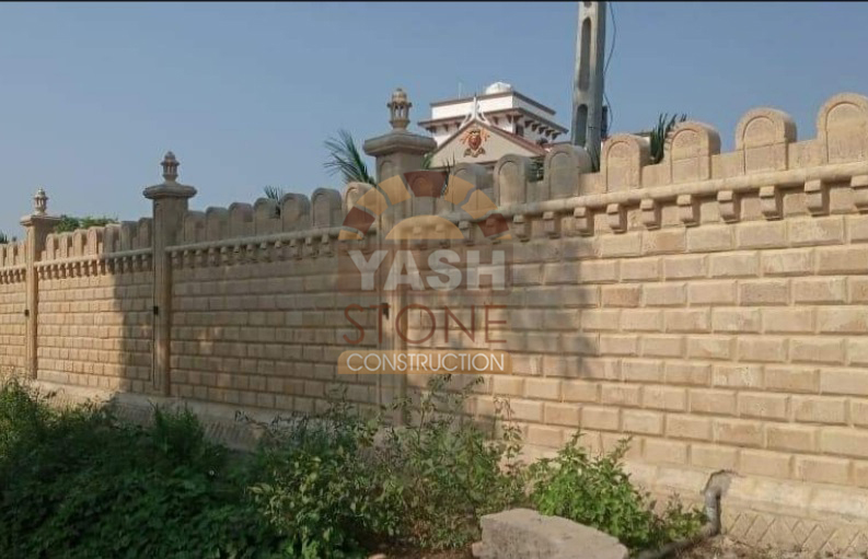Our expertise in designer natural stone compound wall construction makes our sandstone walls ideal for farm boundaries, bungalows, compound walls, fortifications, and party plots, blending perfectly with both traditional and modern architecture.