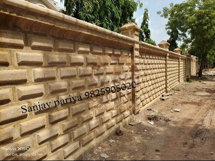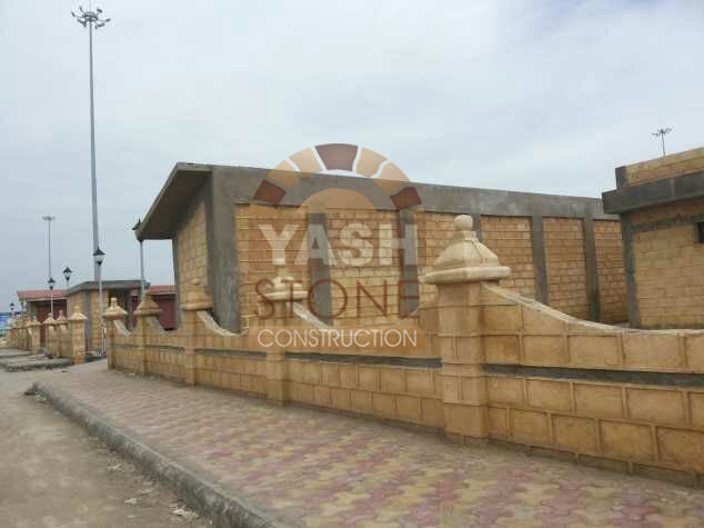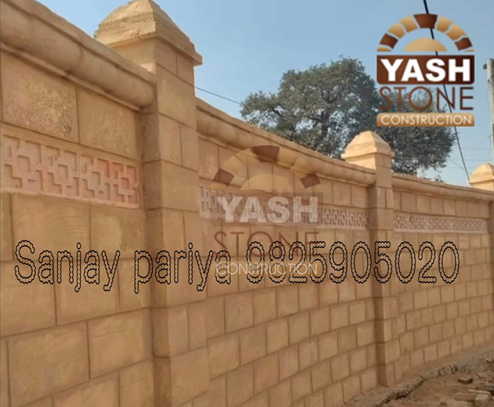We are trusted construction contractors specializing as a natural stone compound boundary wall contractor using premium Porbandar natural sandstone. Known for its beautiful multi-colour tones and rich yellow-gold shine, this heavy raw stone gives a royal, aesthetic, and timeless appearance to every project.
